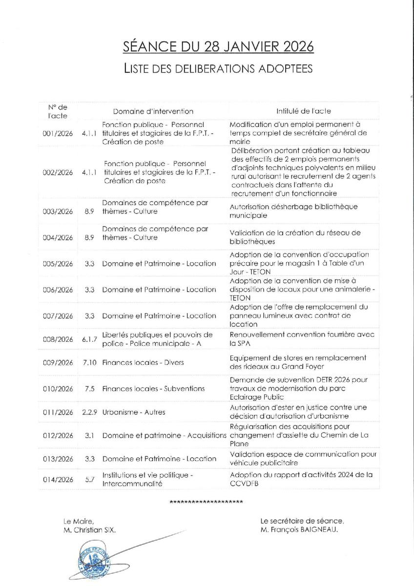 Les délibérations du Conseil Municipal sont consultables en mairie.